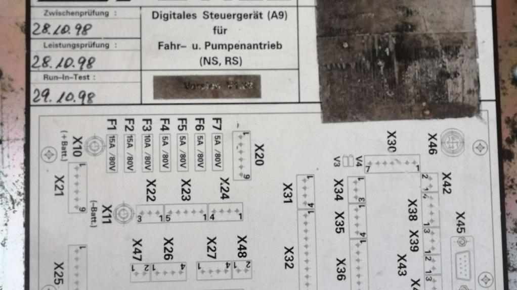 Still A9 Digitales Steuergerät Erste Version Gelbe Stecker - 29.10.1998 - Digitales Steuergerät (A9) für Fahr- u. Pumpenantrieb - Gerätehersteller STILL R60-25 Fehlerbeschreibung: Fehlermeldung im Display. Der Stapler fährt nicht mehr. Laut Still Monteur ist das Steuergerät defekt.